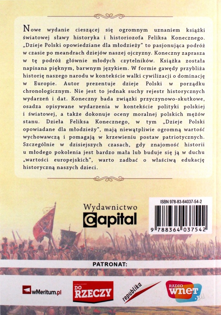 To nie jest zwykły podręcznik. Koneczny barwną gawędą prowadzi przez dzieje Polski, ukazując je jako starcie cywilizacji i ucząc myślenia przyczynowo-skutkowego. „Dzieje Polski opowiadane dla młodzieży” to wartościowa, patriotyczna lektura, która pomaga młodemu pokoleniu zrozumieć historię i budować świadomą tożsamość.
